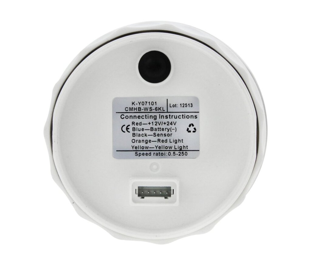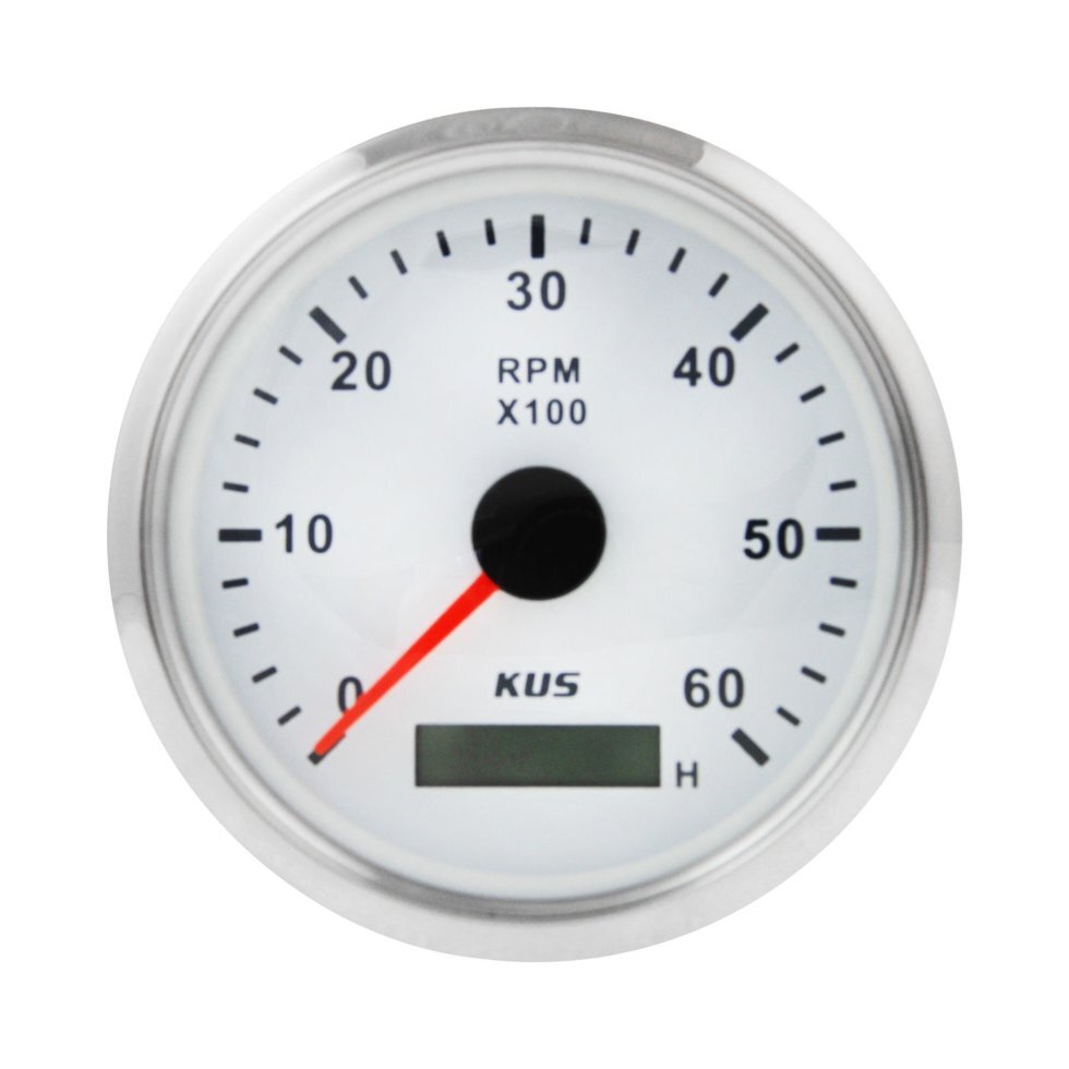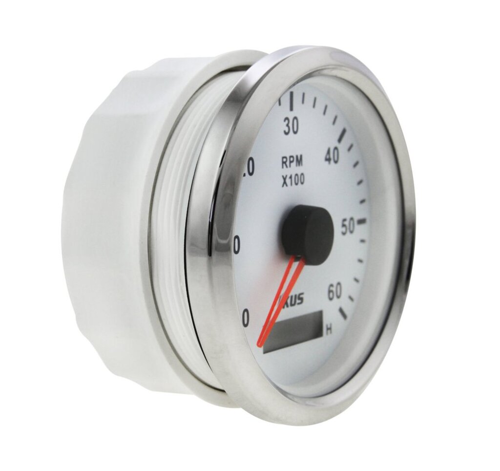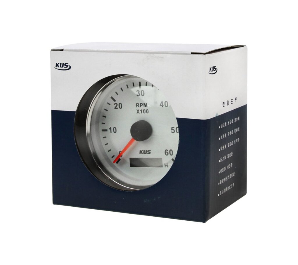 Тахометр 0-6000 об/мин со счетчиком моточасов делитель 0.5-250, белый циферблат, нержавеющий ободок JMV00245_KY07101