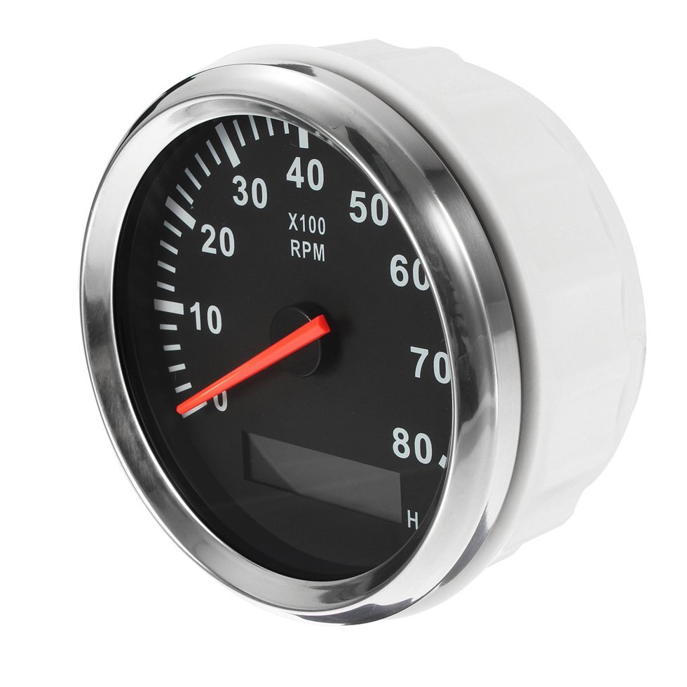 12V / 24V морской тахометр Лодка Тахометр метр LCD Счетчик моточасов 8000 об / мин 85 мм