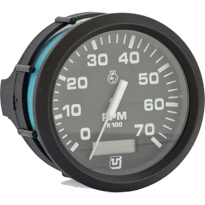 - Описание Тахометр со счетчиком моточасов. Данный прибор предназначен для измерения числа оборотов двигателя, а также для учета и контроля времени работы мотора. Шкала измерений в 7000 оборотов в минуту. Применяется в составе приборной панели судна.