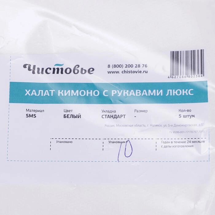 Халат 'Кимоно' SMS люкс с рукавами, белый, 5 шт