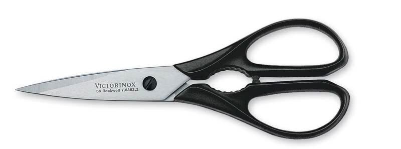 - Особенности Группа Victorinox - Кухонные принадлежности и товары для дома;; Оригинальное название Victorinox - Ножницы кухонные универсальные;; Размер ножа - 20 см;; Раздел Victorinox - Кухонные и профессиональные ножи;; Материал рукояти - Пластик;; Цвет рукояти - Чёрный;; Вес, гр - 110;; Прочие особенности - Нержавеющие;;