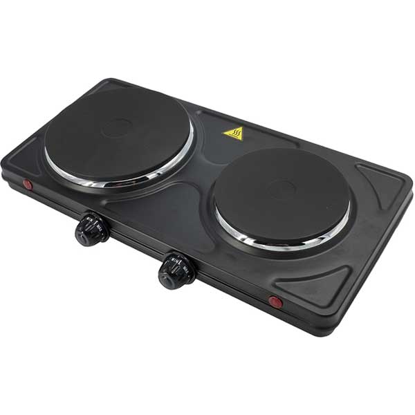Управление: фронтальное, переключатели поворотные, Нагревательный элемент: конфорка 2шт, Габариты (ШхГхВ), мм: 415 х 235 х 75, Цвет: Черный