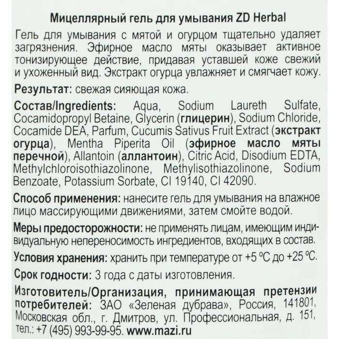 Гель для умывания ZD Herbal мицеллярный, 150 мл