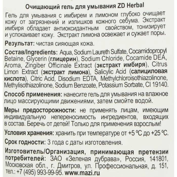 Гель для умывания ZD Herbal очищающий, 150 мл
