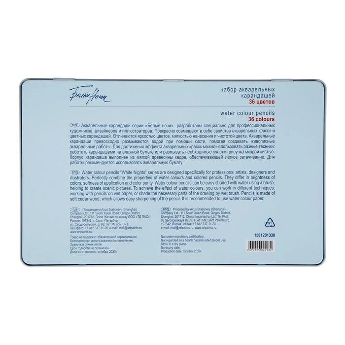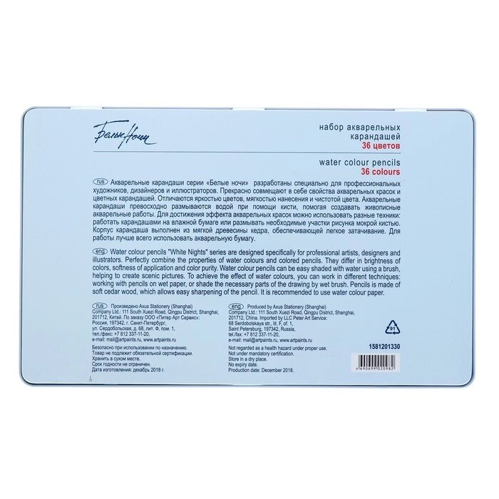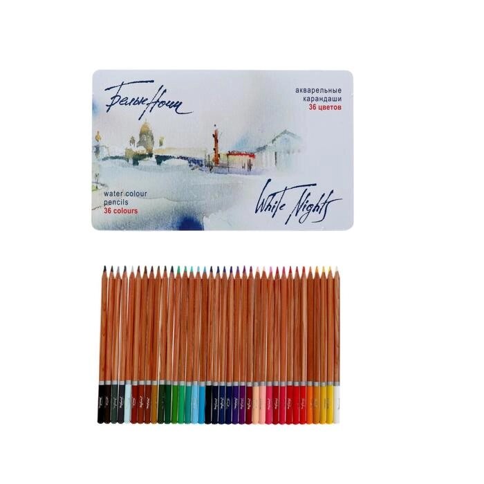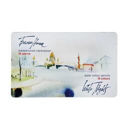 Карандаши акварельные набор 36 цветов, ЗХК "Белые ночи", в металлическом пенале