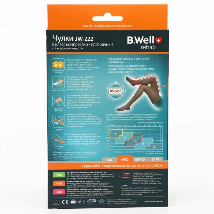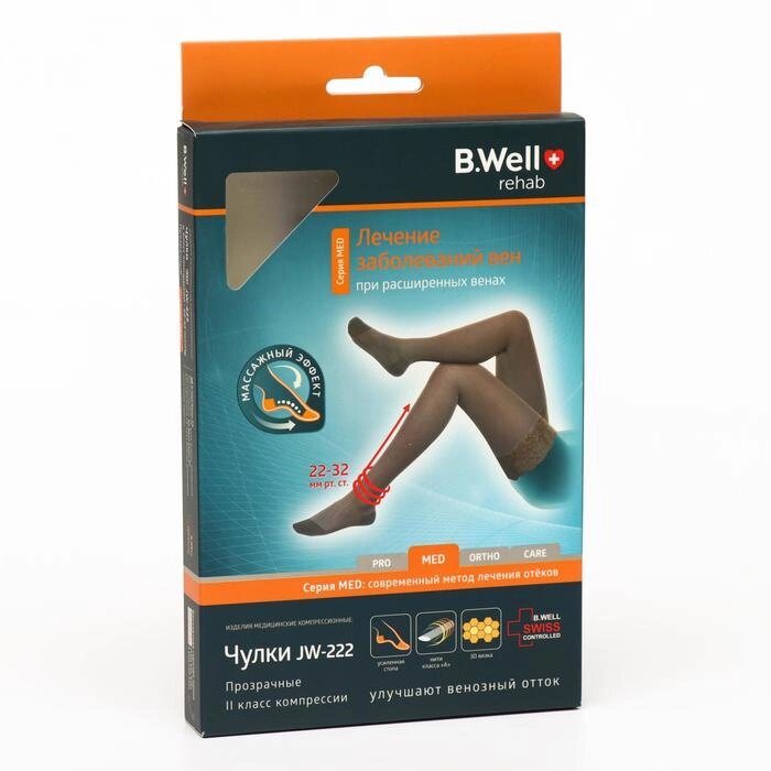 Чулки компрессионные прозрачные с ажурным верхом B. Well, JW-222 , 2 класс, размер 2, цвет Natural