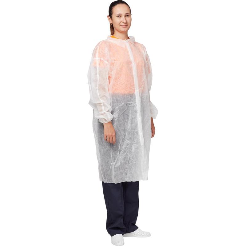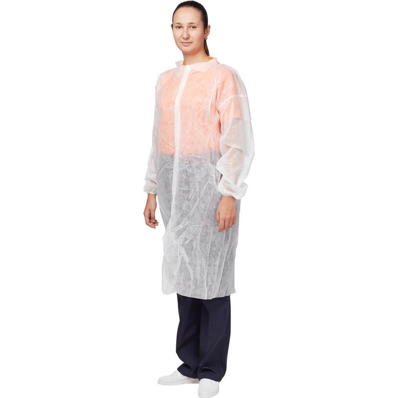 Халат одноразовый на кнопках белый (размер 52-54, XL, 10 штук в упаковке)