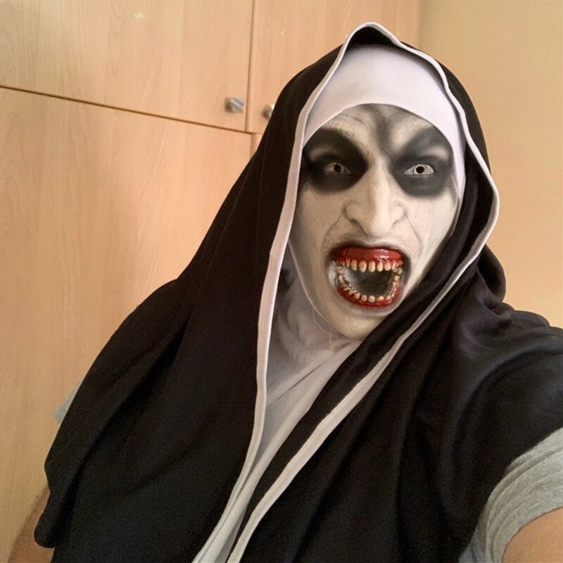 Валак страшный ужас монахиня косплей Латекс Маска головной платок анфас шлем Хэллоуин костюм для вечеринки