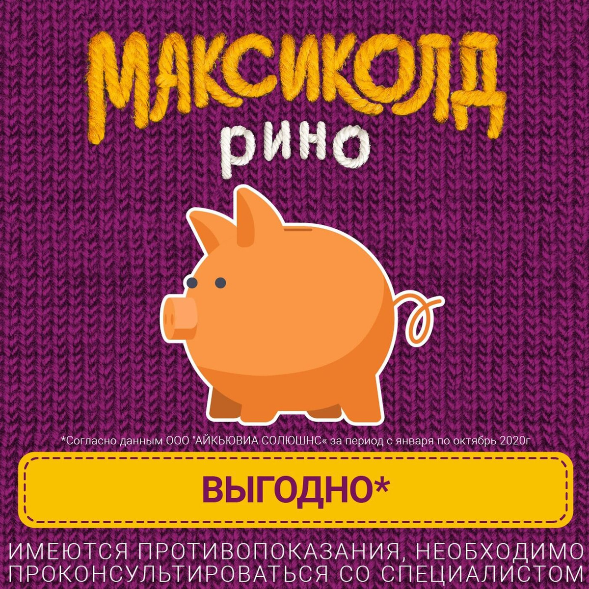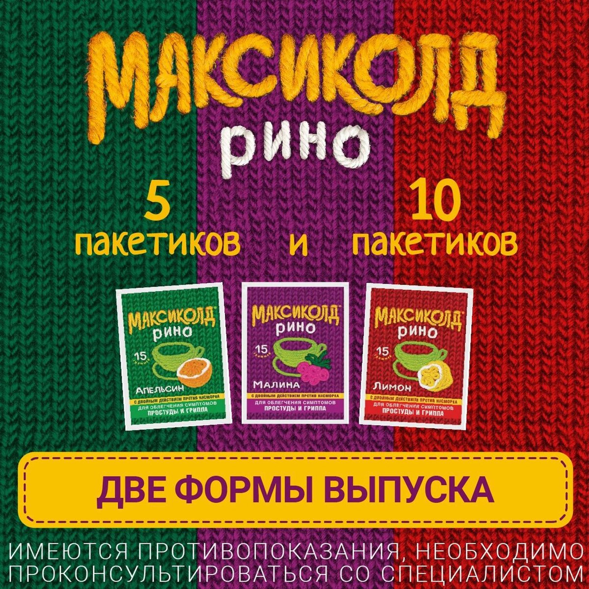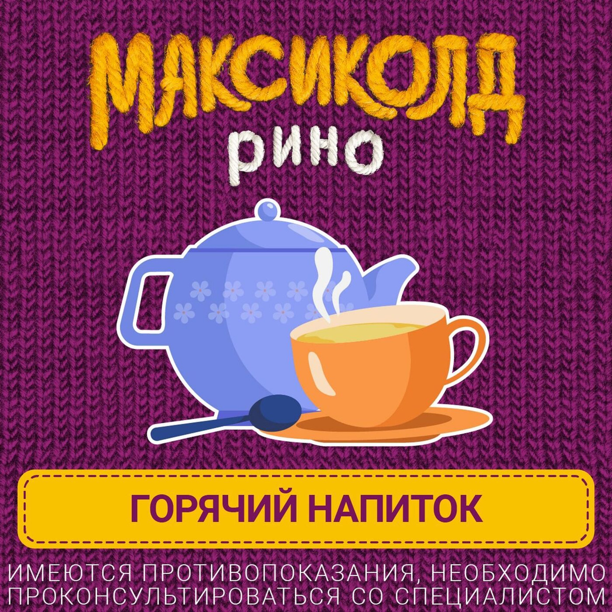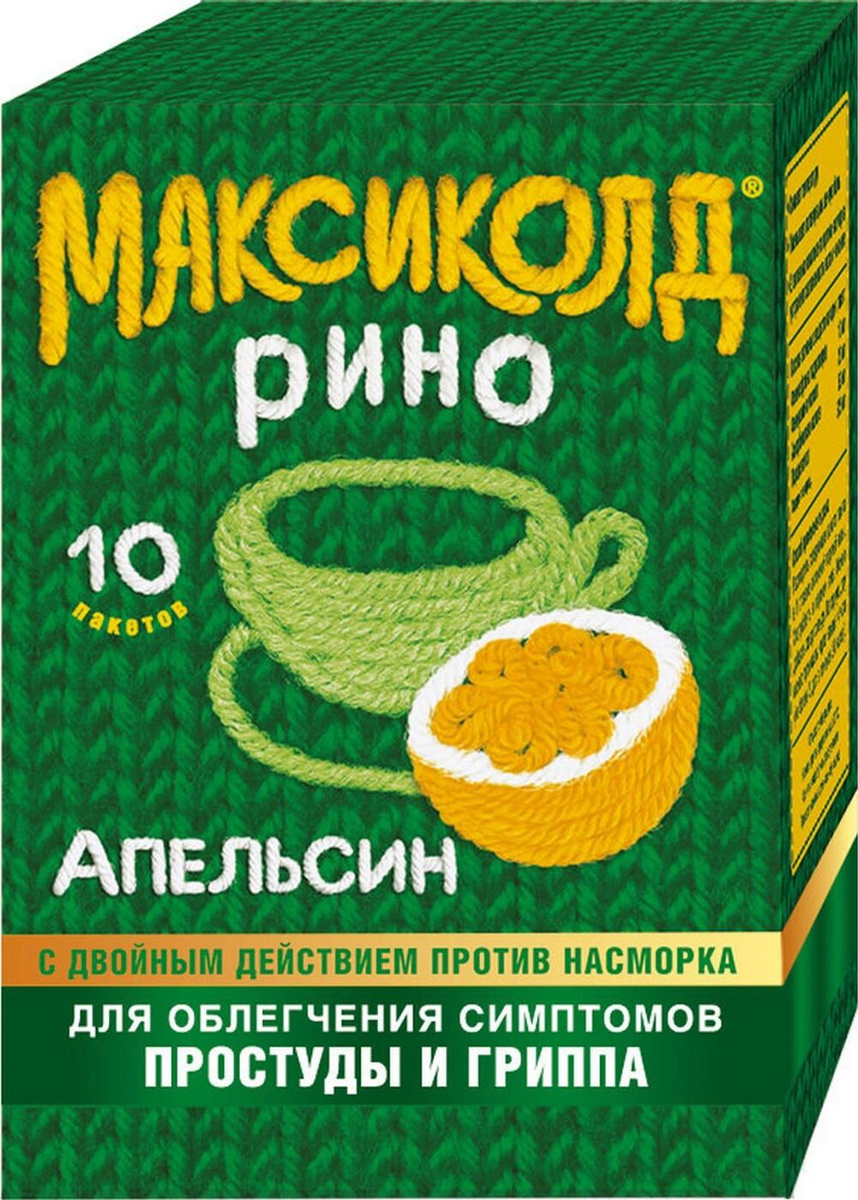 Максиколд Рино (апельсин) при ОРВИ, простуде и гриппе + парацетамол 325мг, жаропонижающее, 10 пакетиков