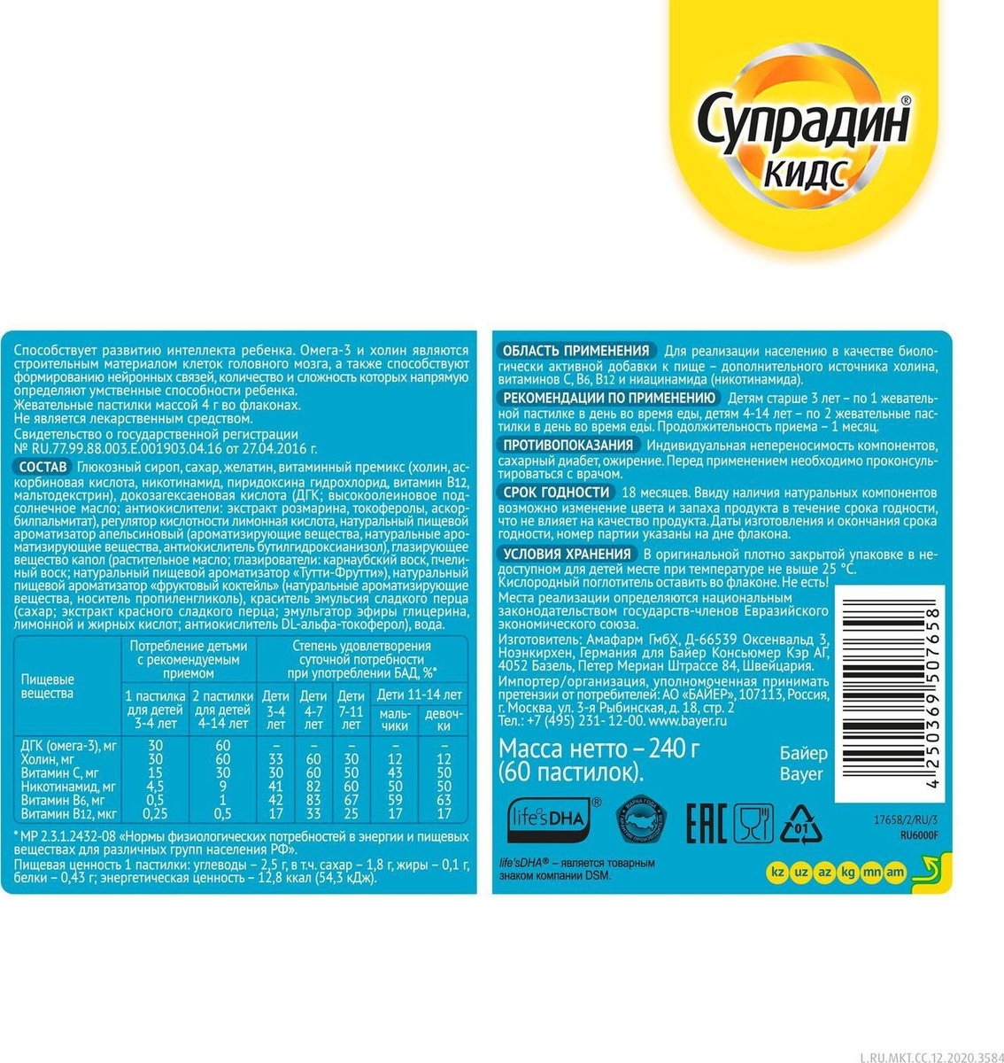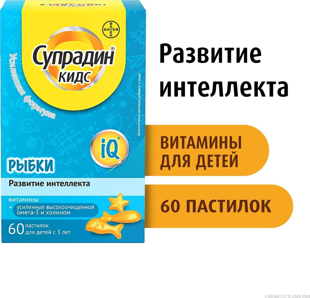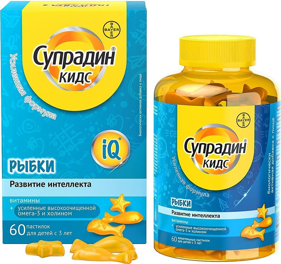 Супрадин Кидс Рыбки, витамины для детей, жевательные пастилки, 60 шт., Байер