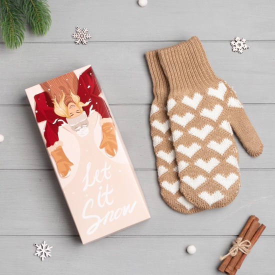 Варежки KAFTAN "Let it snow" в подарочной коробке женские, цвет бежевый, размер 19 7097103