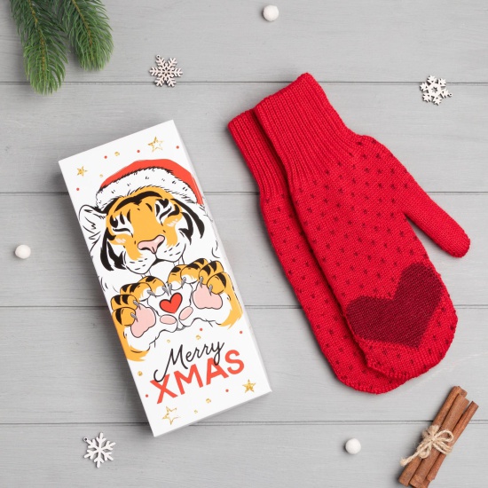 Варежки KAFTAN "Merry Xmas" в подарочной коробке женские, цвет красный, размер 19 7097104