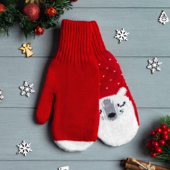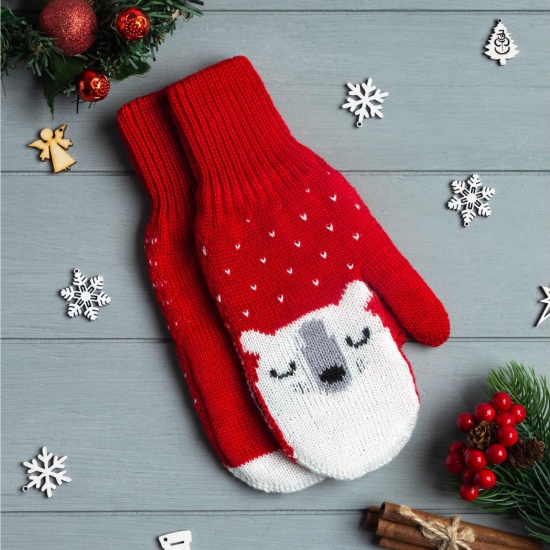 Варежки KAFTAN "Мишка" женские, цвет красный, размер 19 7159508