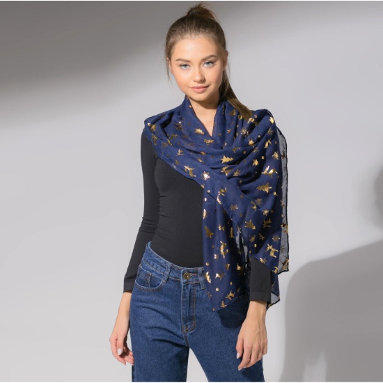 Шарф MINAKU "Новогодние друзья"женский, цвет синий