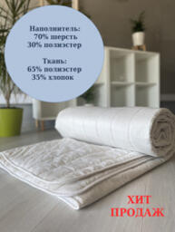 Одеяло БельВита 150х200 стёганое шерсть 1,5 спальный, 150x200, Всесезонное, с наполнителем Шерсть, Полиэстер