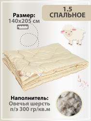 Одеяло Alvitek Модерато Премиум 140x205, Всесезонное, Зимнее, с наполнителем Овечья шерсть, Шерсть