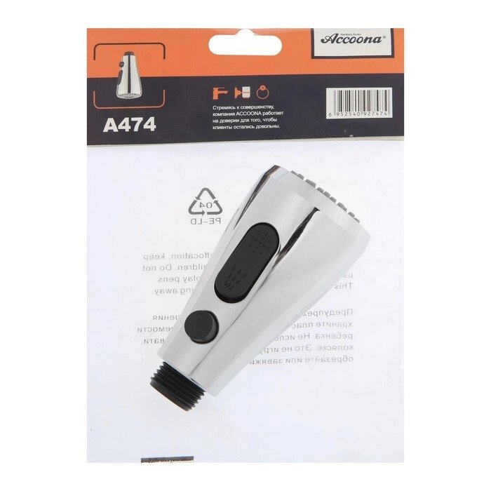 Лейка для кухонного смесителя Accoona A474, 2 режима, с кнопкой, хром
