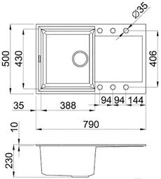 - Диаметр сливного отверстия 3.5"
