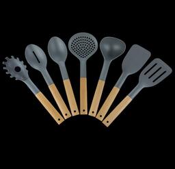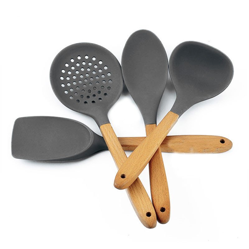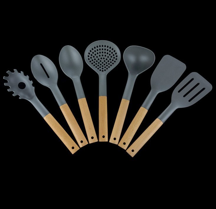 7 шт Деревянная ручка Силиконовый Кухонная посуда На открытом воздухе Кемпинг Посуда Портативная многократная