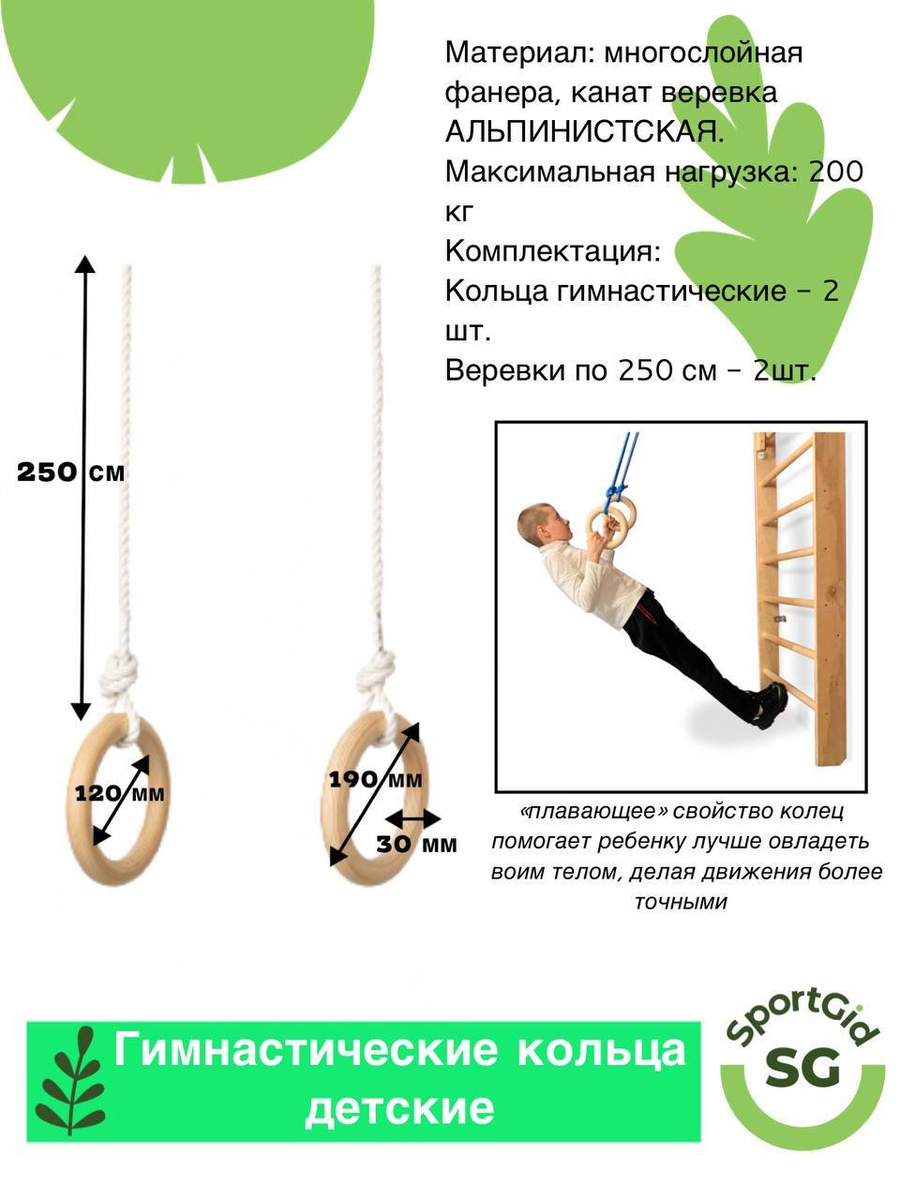 Детские гимнастические кольца, Гимнастические кольца для шведской стенки на веревочном подвесе (2,5м.), Sportgid СГ-00002654