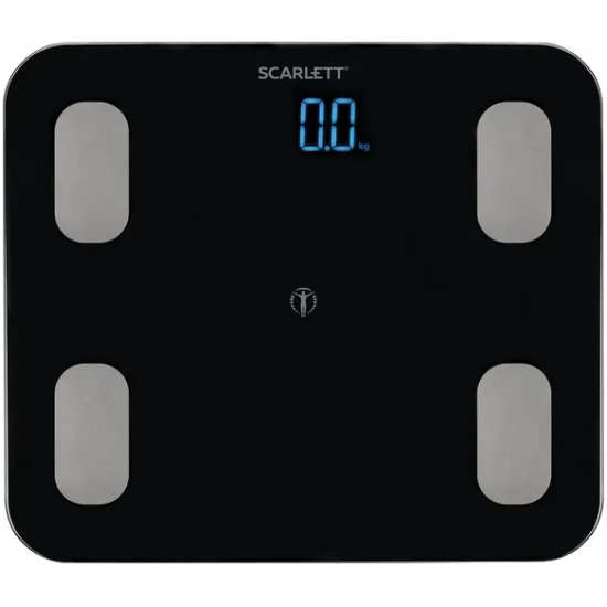 Весы напольные Scarlett SC-BS33ED46 диагностическиеУмные Весы SCARLETT SC-BS33ED46 – устройство, которое не просто определяет ваш вес, но и процент воды и жира в организме, мышечную и костную массу и другие биометрические параметрыПри взвешивании прибор пропускает через тело неощутимый микроток. За счет этого измеряются 7 биометрических параметров тела. Высокочувствительные датчики гарантируют точность. Динамика всех параметров хранится в приложении в вашем смартфоне, помогая поддерживать ваше тело в отличной форме. Приложение совместимо с iOS и AndroidБольшой LED-дисплей и качественное высокопрочное стекло способны выдержать нагрузку до 150 кг и подчеркивают технологичный дизайн. Автоматическое включение/выключение экономит заряд батареи. Прорезиненные ножки для предотвращения скольжения позаботятся о безопасности эксплуатации.