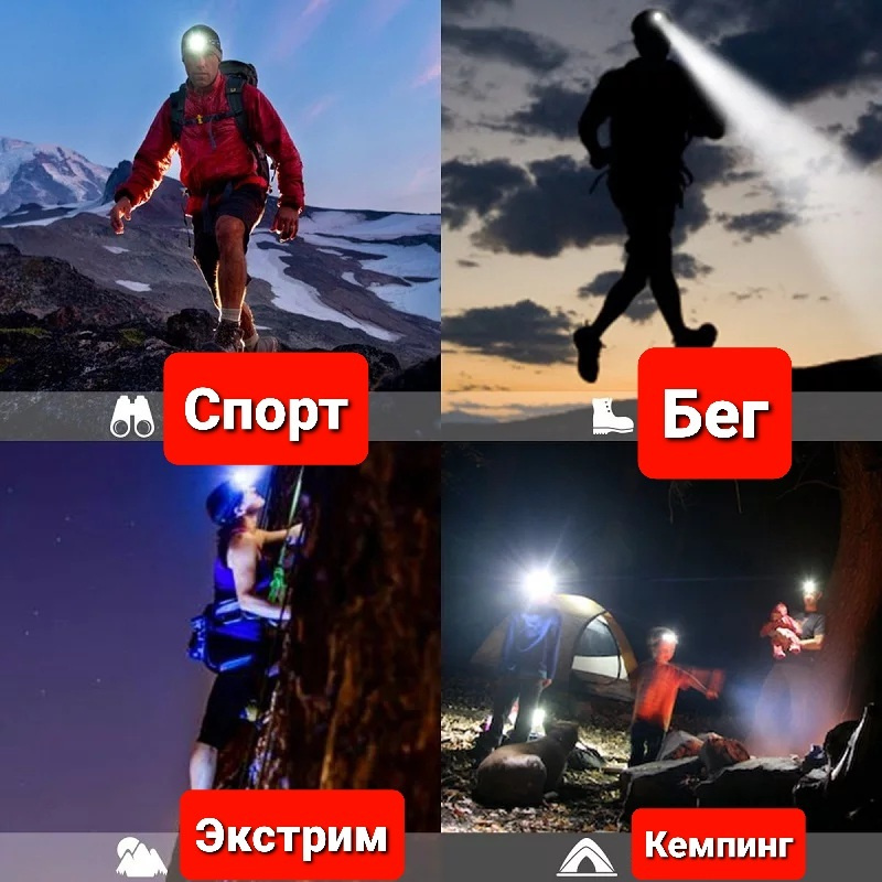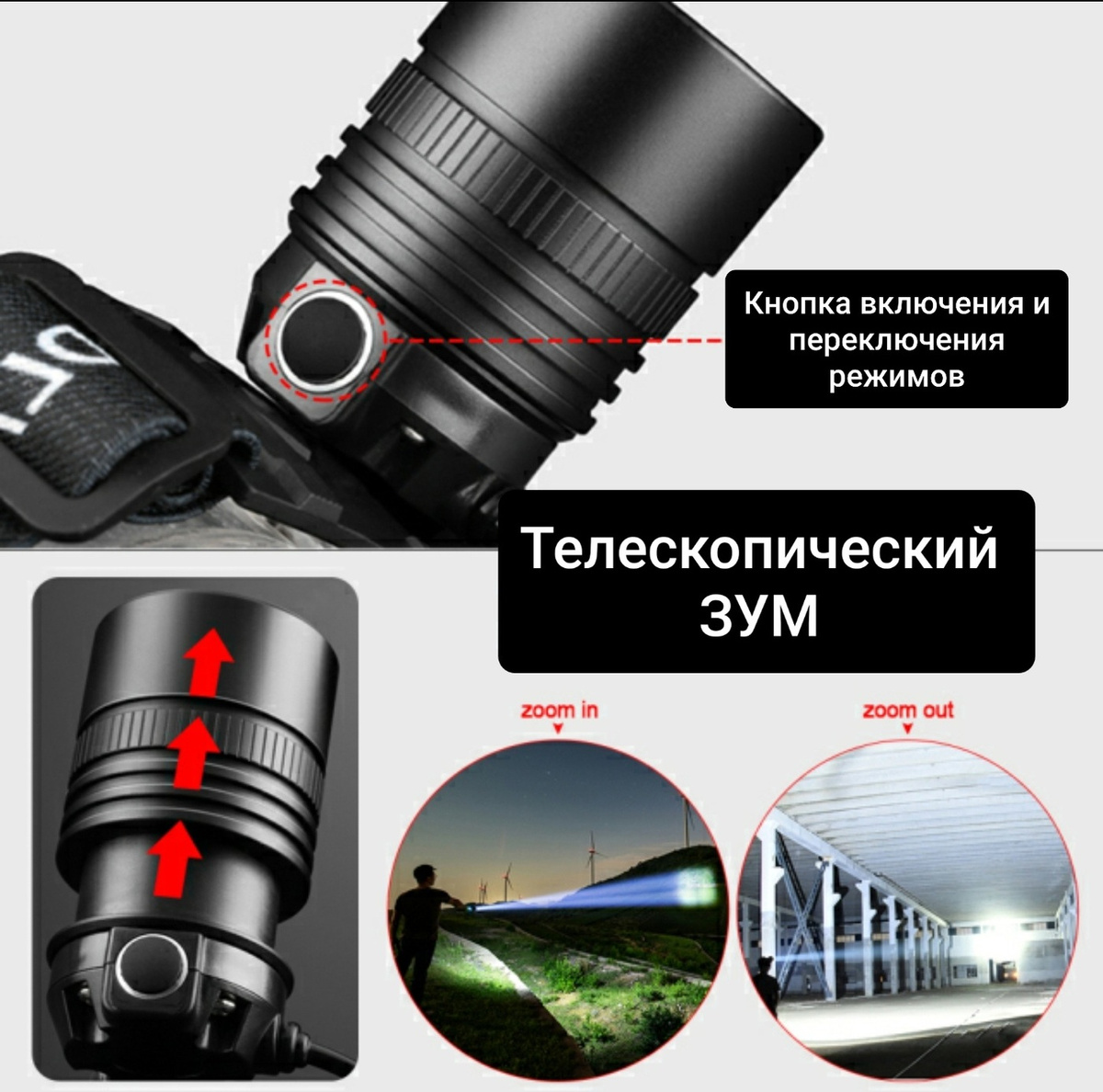Фонарь налобный, фонарь светодиодный, фонарь аккумуляторный, 2 аккумулятора 18650 в комплекте, налобный фонарь с мощным светодиодом, зарядка от microUSB, черный