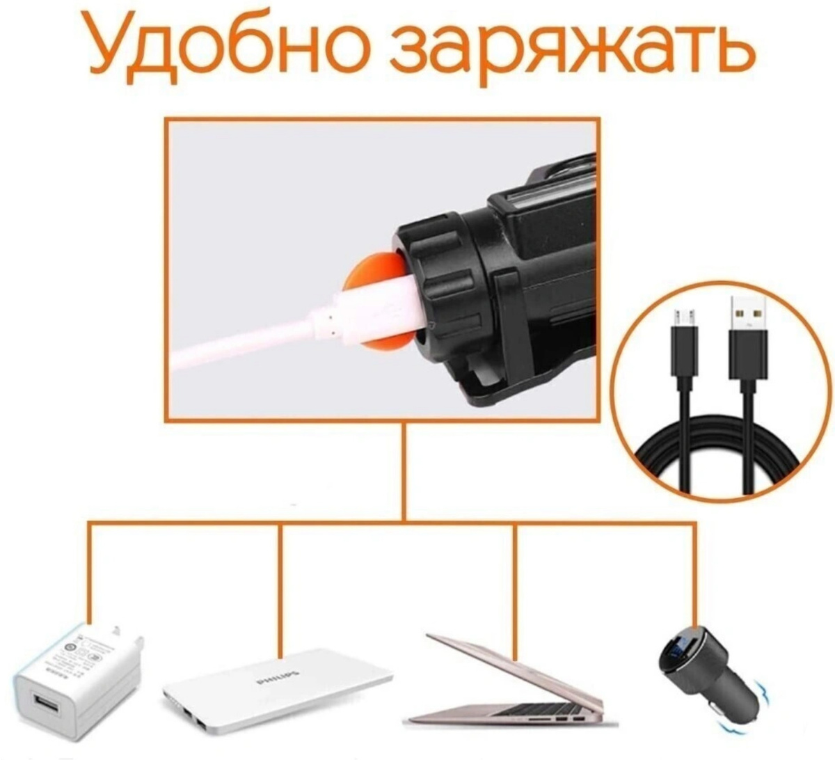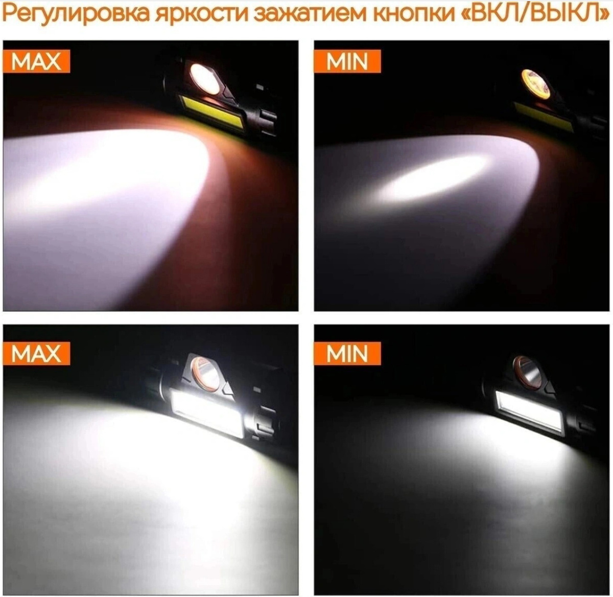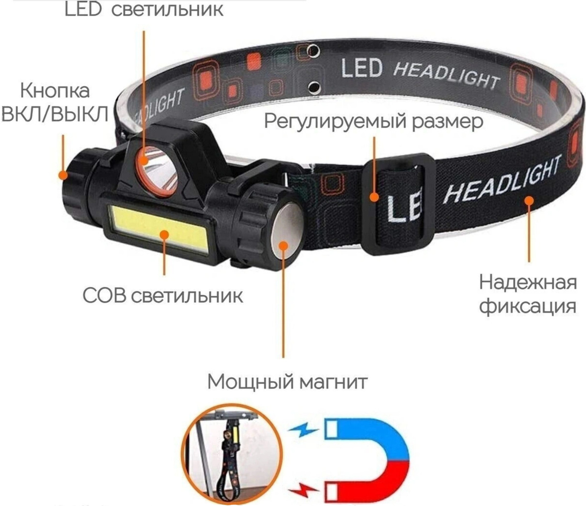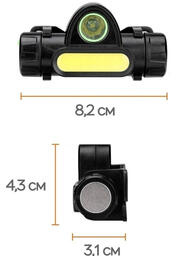 Налобный фонарь аккумуляторный/ С магнитом/ Зарядка от USB/Светодиодный 2 режима (COB и LED)