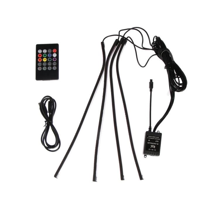Подсветка салона 12 LED-5050, 32 см, пульт, светомузыка, мультисвет RGB, 4 шт