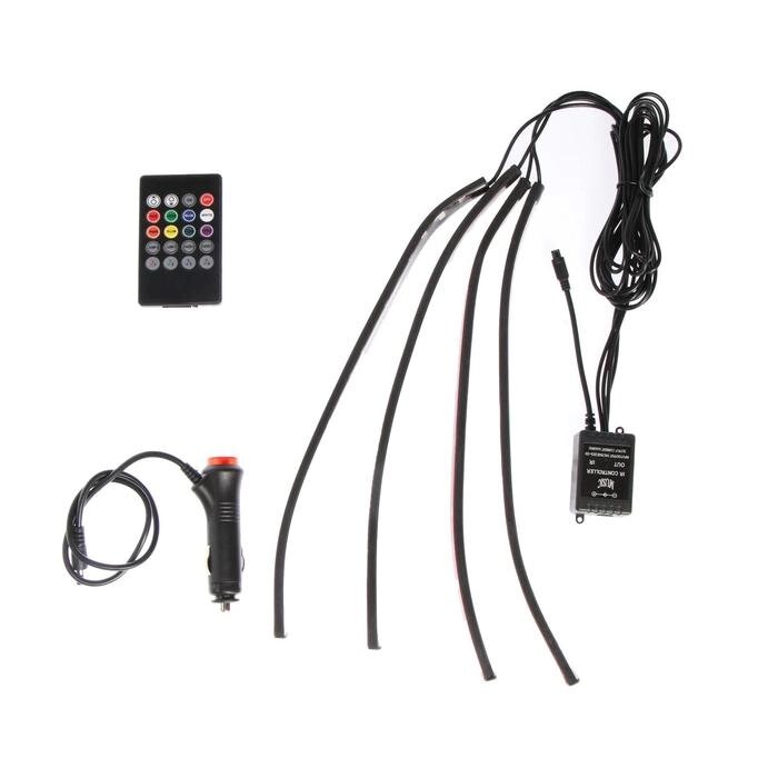 Подсветка салона 18 LED-5050, 32 см, пульт, светомузыка, мультисвет RGB, 4 шт