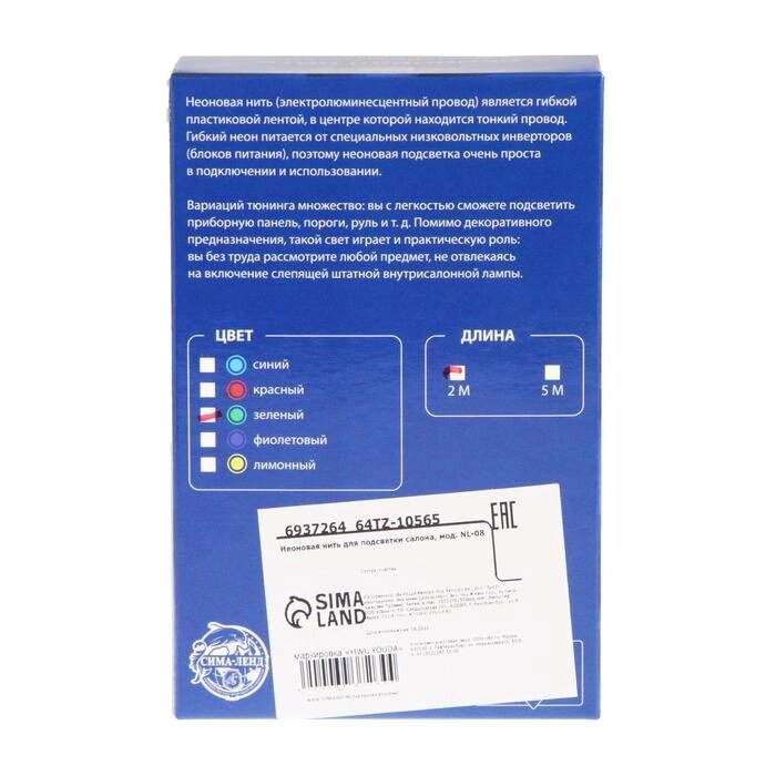 Неоновая нить Cartage для подсветки салона, адаптер питания 12 В, 2 м, лимонный