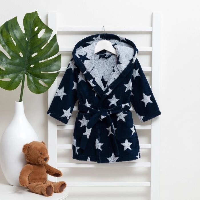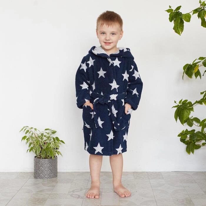 Халат махровый детский Крошка Я "Звездочки" р-р 30, цв. синий, 100%хл, 360 г/м2