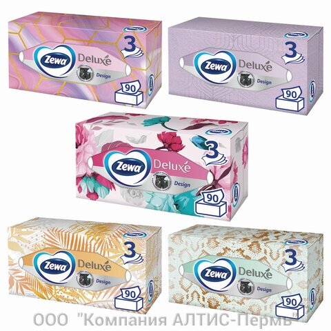 Салфетки косметические 3-х слойные, 90 шт., ZEWA Deluxe Design, в картонном боксе, 28420