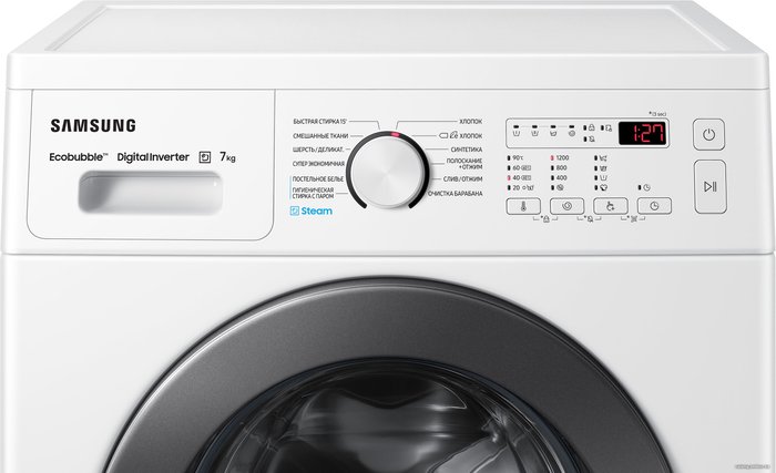 • Все программы ХлопокХлопок ЭкоСинтетикаПолоскание + ОтжимСлив/ОтжимОчистка барабанаБыстрая стирка 15 минСмешанные тканиШерсть/Деликат.Супер экономичнаяПостельное белье с паромГигиеническая стирка с паром