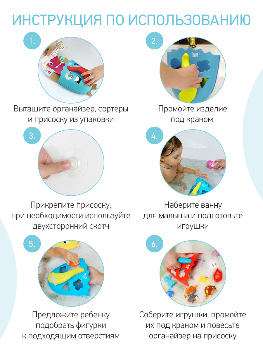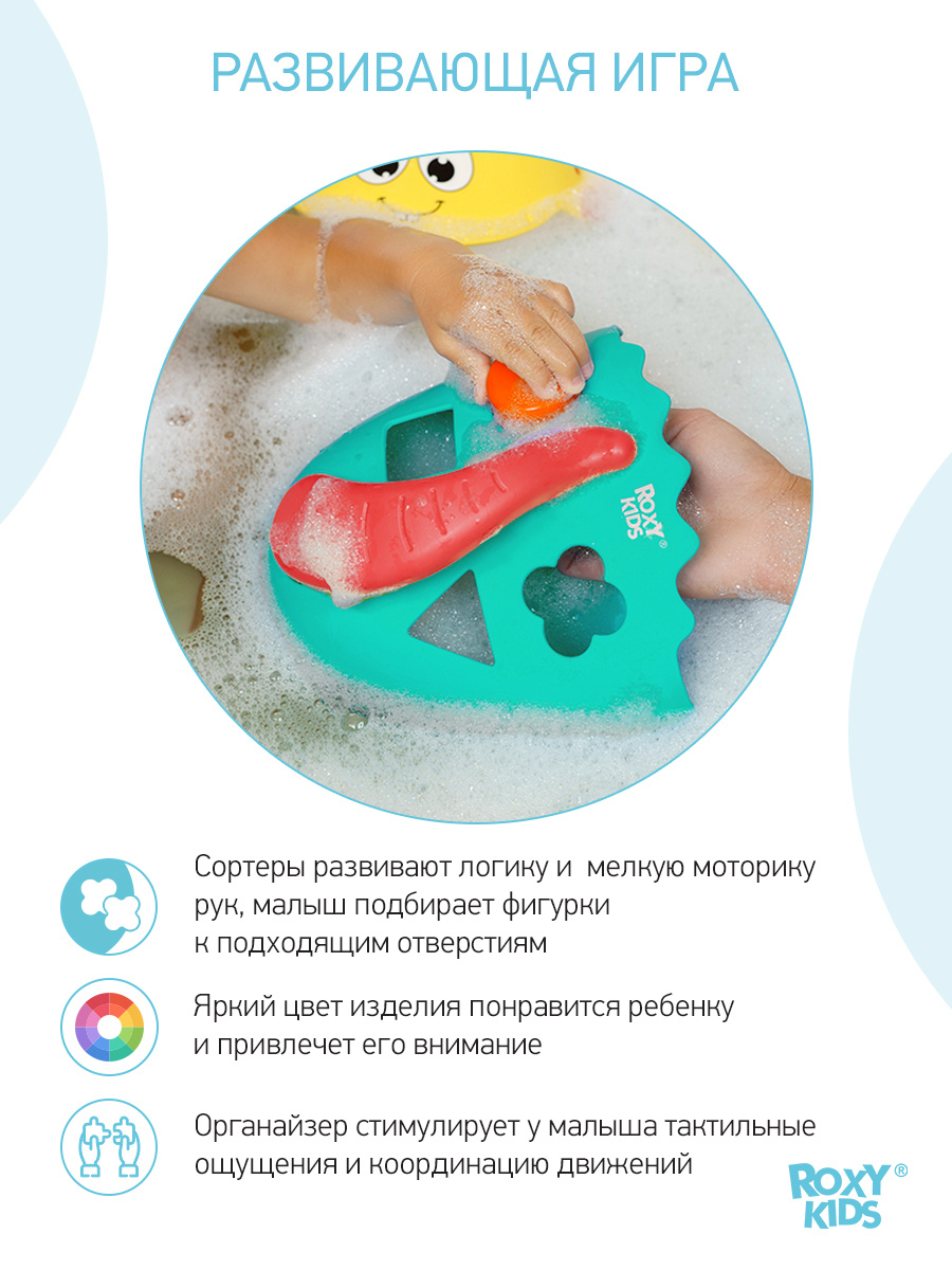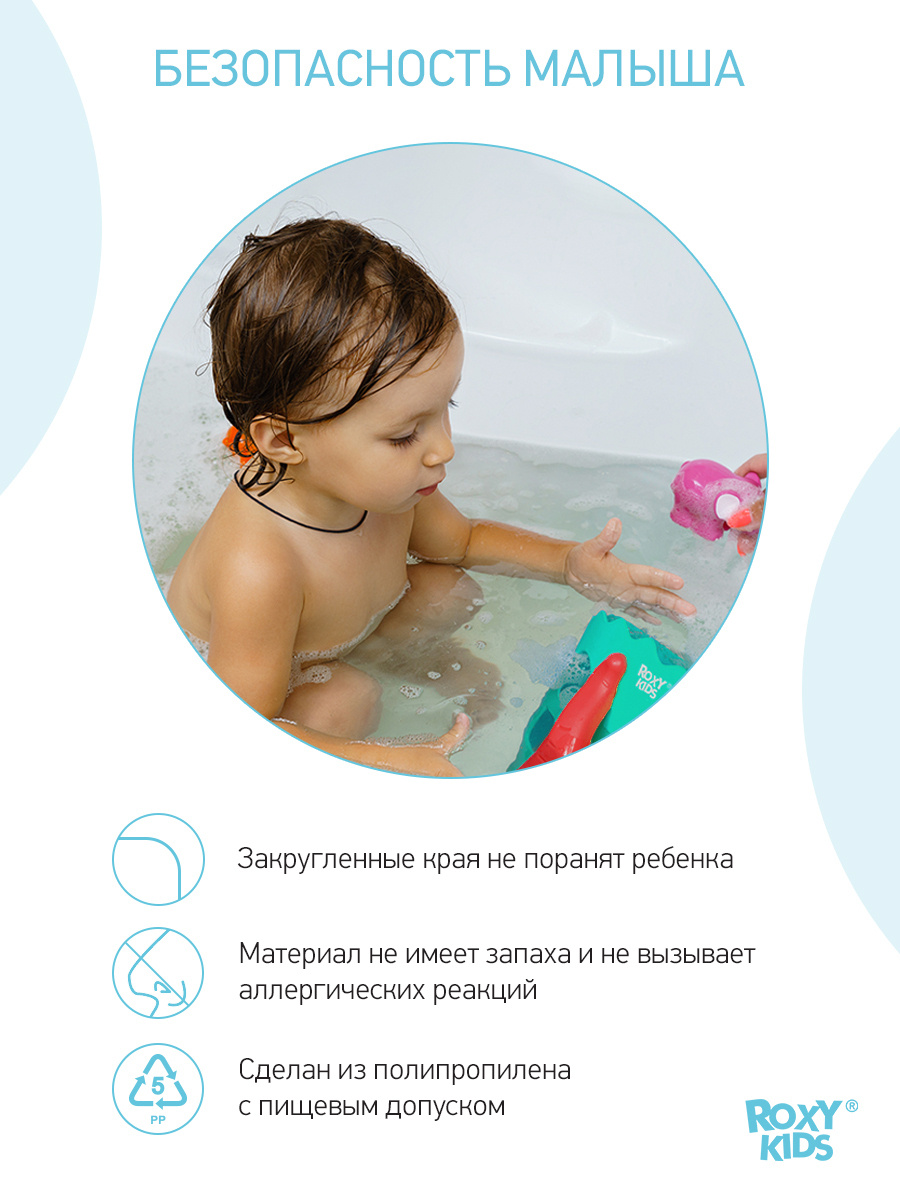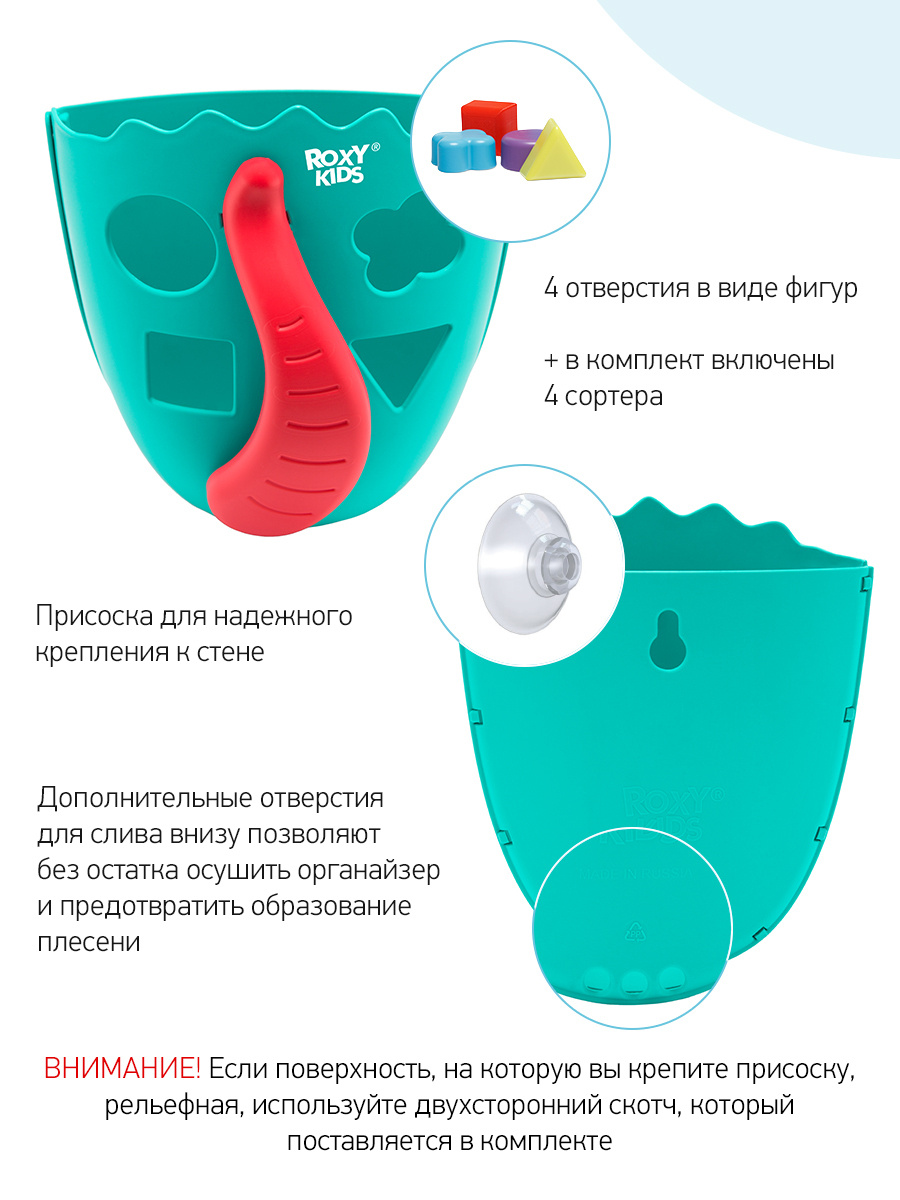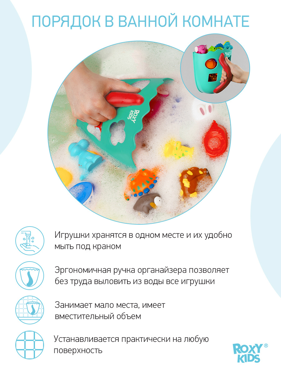 Органайзер детский ковш для ванной для игрушек для купания DINO от ROXY-KIDS, цвет мятный/коралловый