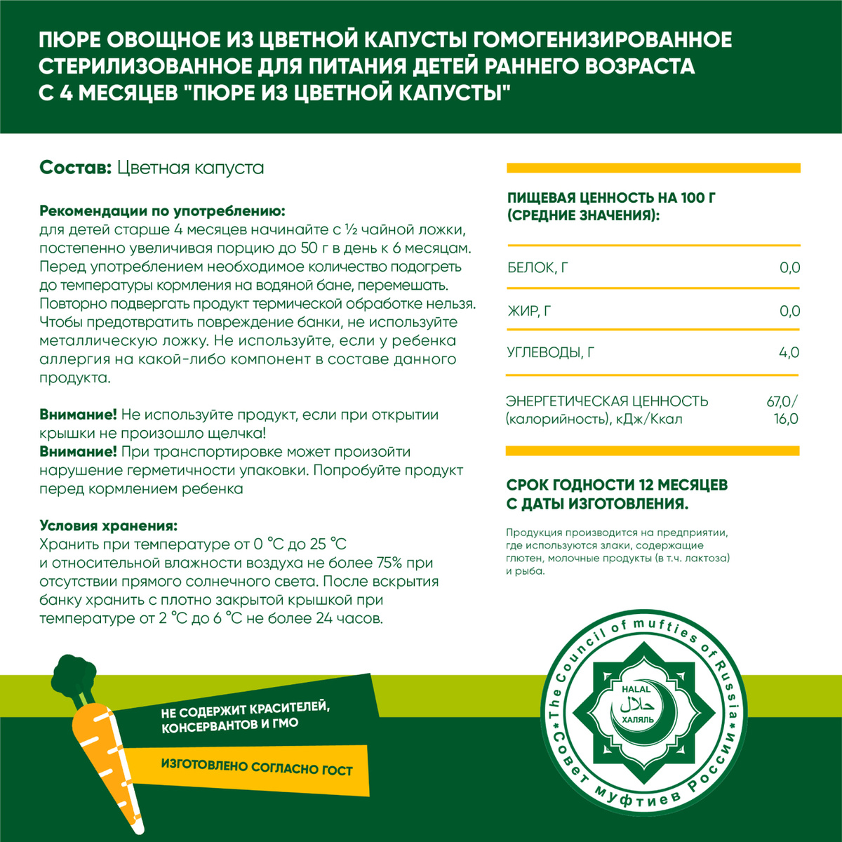 Пюре Habibi Цветная капуста , с 4 месяцев, 6 шт по 100 г