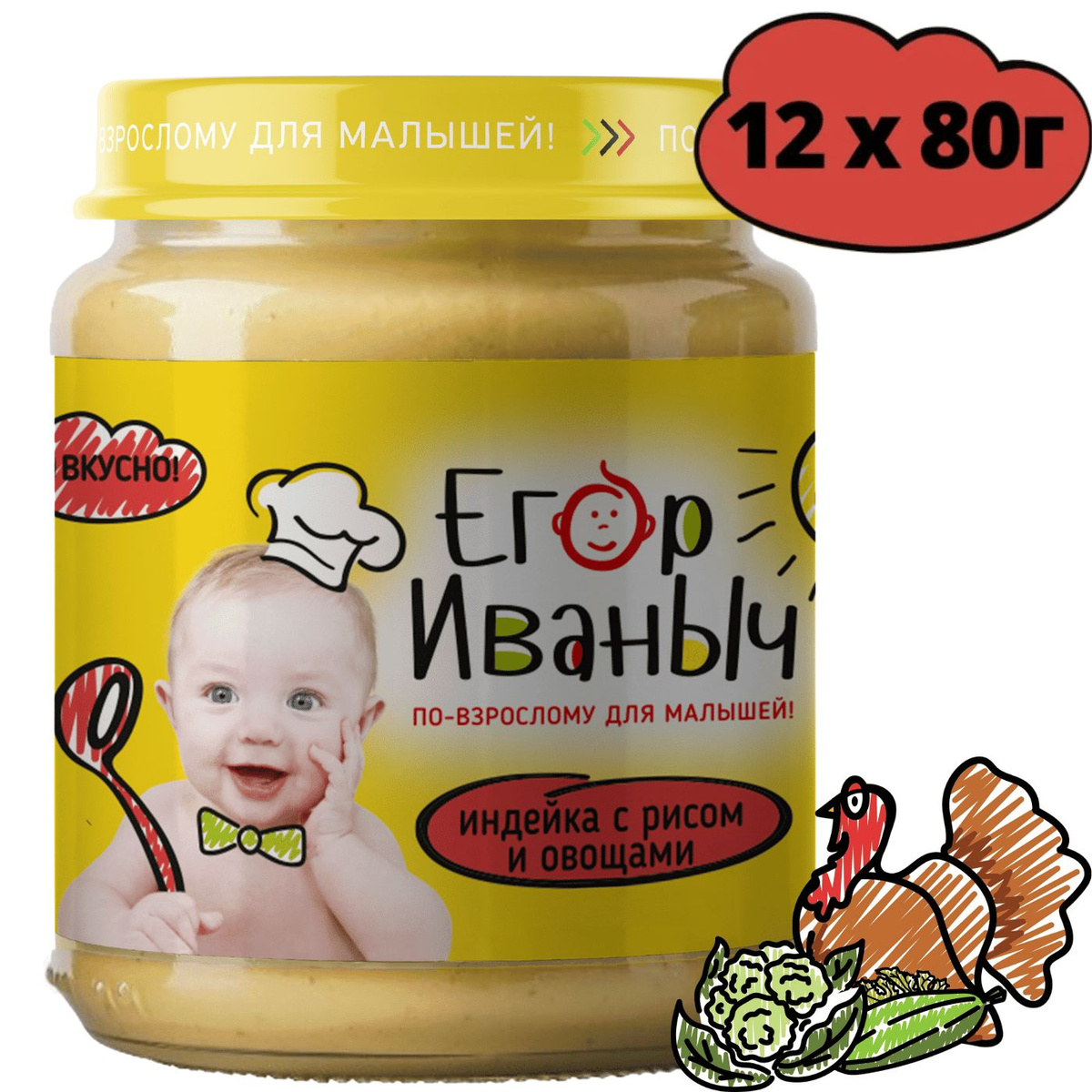 Пюре Егор Иваныч Индейка с рисом и овощами, 12 шт * 100 г54