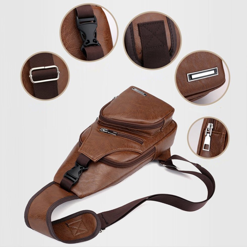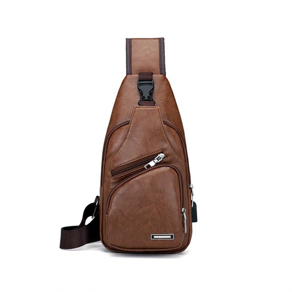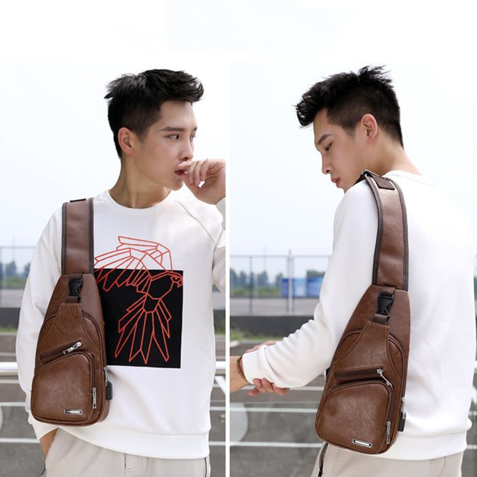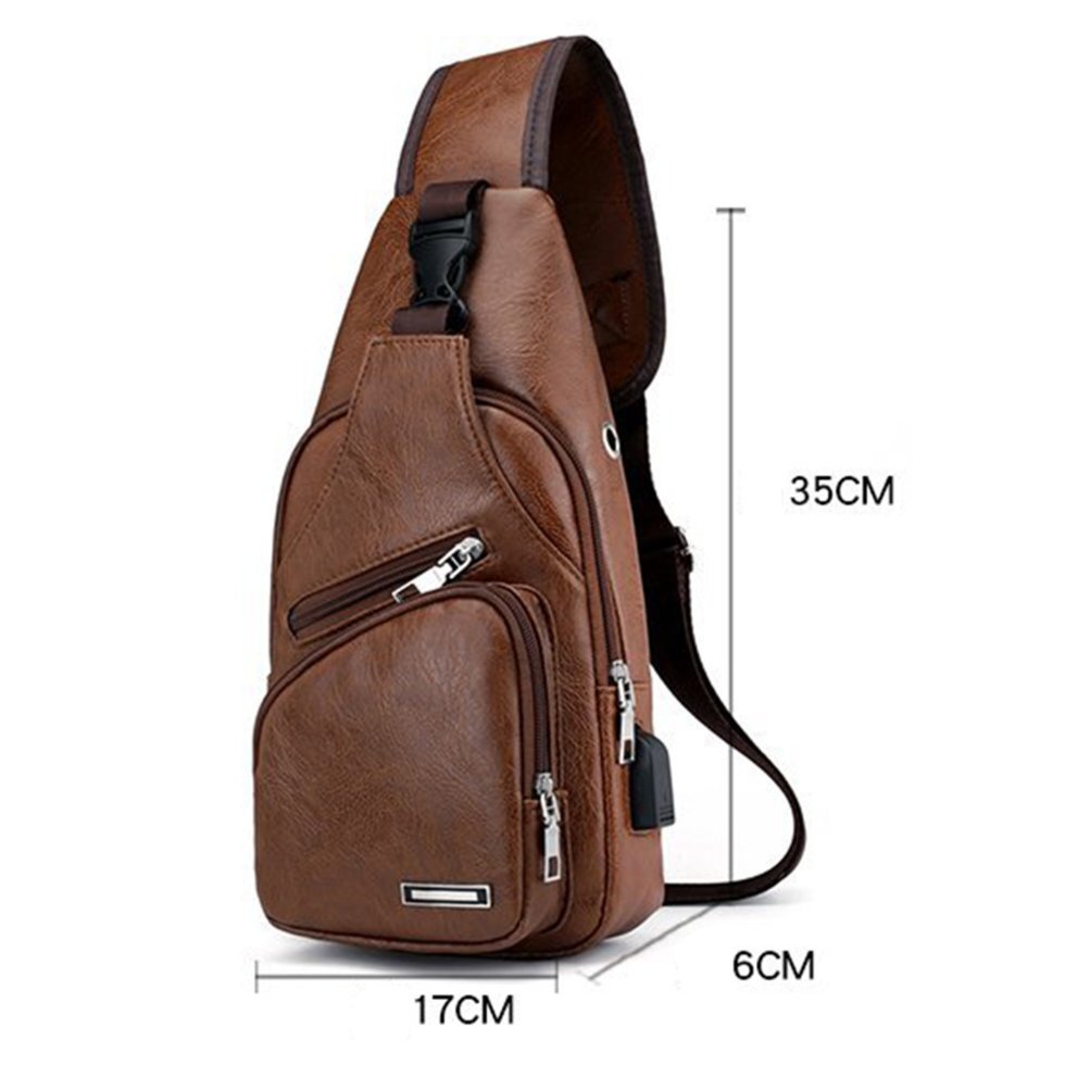 Повседневная На открытом воздухе USB-порт для зарядки слинг Сумка Кожаный сундук Сумка Crossbody Сумка