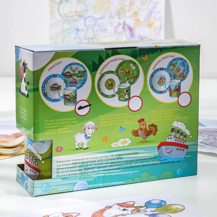 Набор посуды детский «Транспорт», 3 предмета: кружка 240 мл, тарелка d=19 см, миска d=18 см, в подарочной упаковке