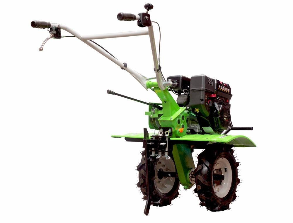 - В комплекте оборудования Защитные крылья, Фрезы, Клиновидные ремни, Диски защиты растений, Культиватор, Транспортировочное колесо, Боковые диски, Колеса пневматические