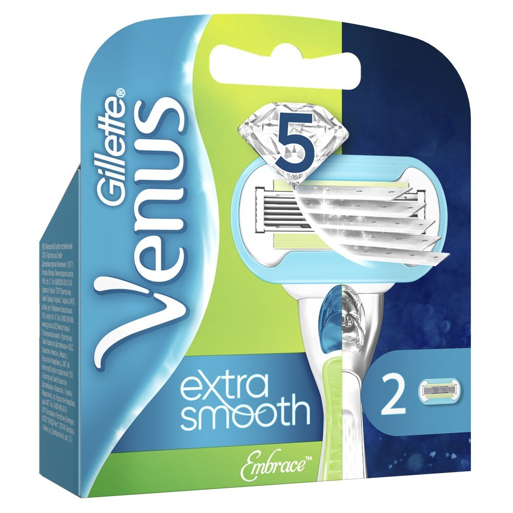 Сменные кассеты для бритв Gillette Venus Extra Smooth Насадки Джилет с 5 лезвиями с алмазоподобным покрытием 2 шт