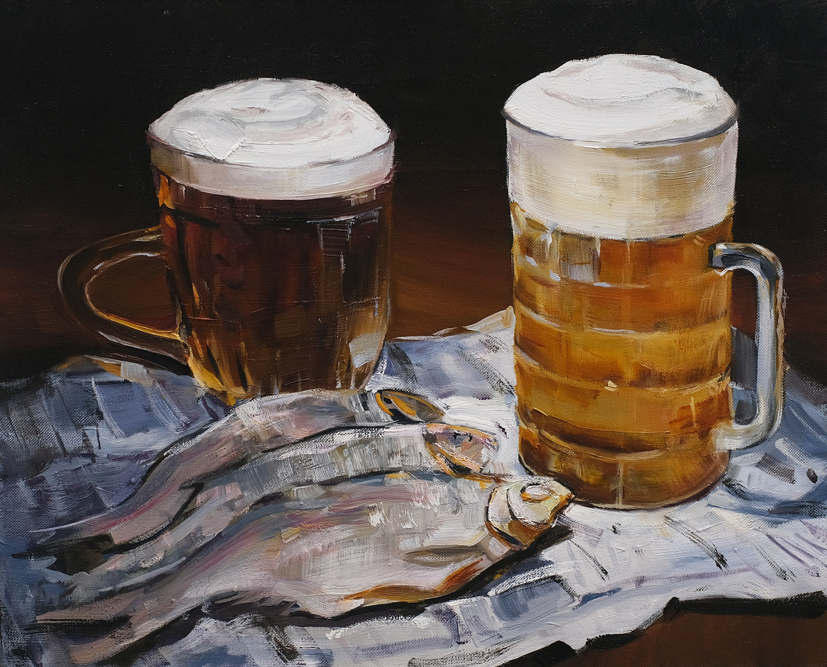 - Жанр картины Еда, Интерьер, Мужчины, Напитки, Натюрморт