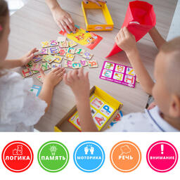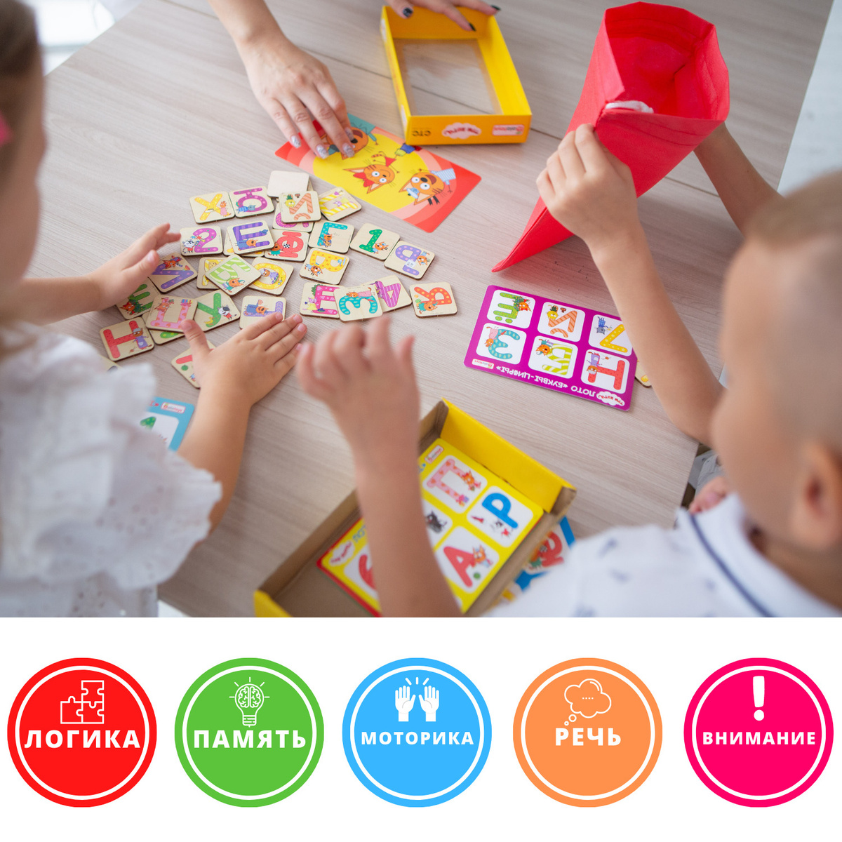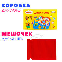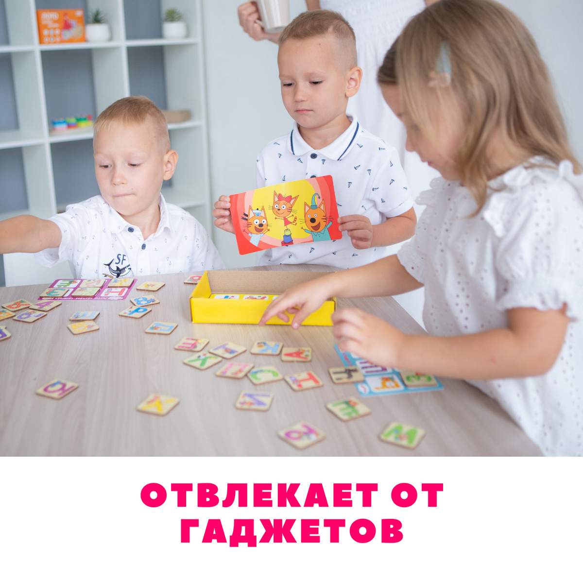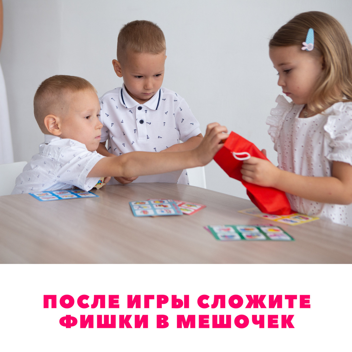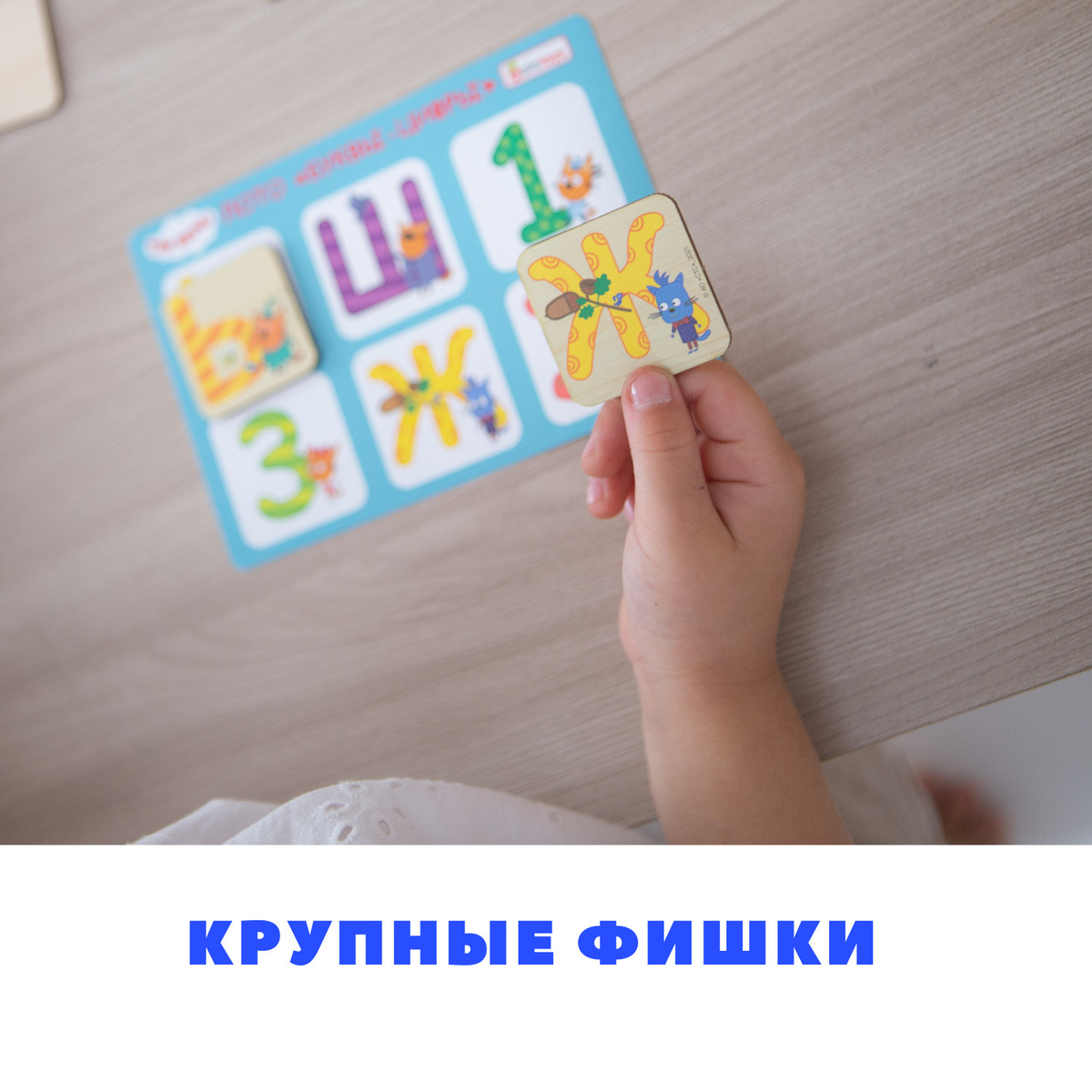Настольные игры для детей ТРИ КОТА игрушки Лото детское русское для малышей IQ лото тактильное Alatoys 42 деревянные фишки, 7 карточек, мешочек