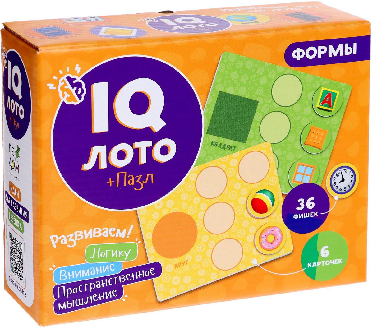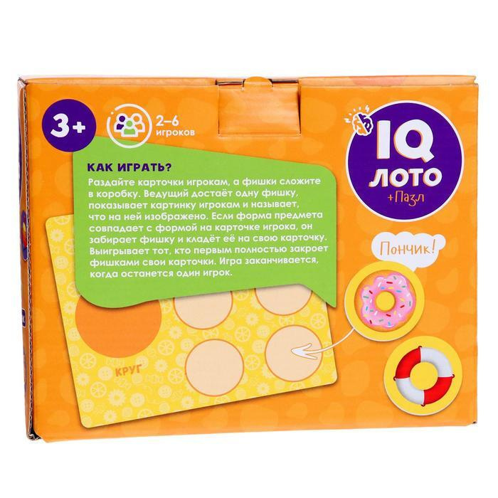Детское развивающее IQ лото-пазл "Формы", развитие логики и внимания, 2 в 1, набор 6 карточек + 36 фишек