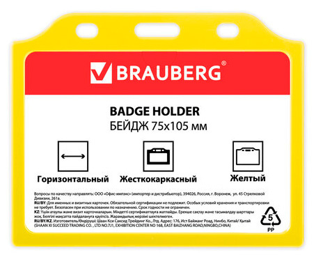 Бейдж 235753 105х75мм горизонтальный без крепления желтый (упак.:1шт)