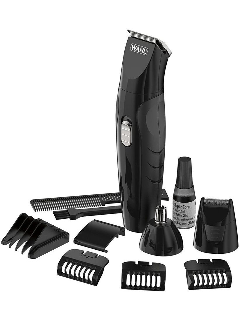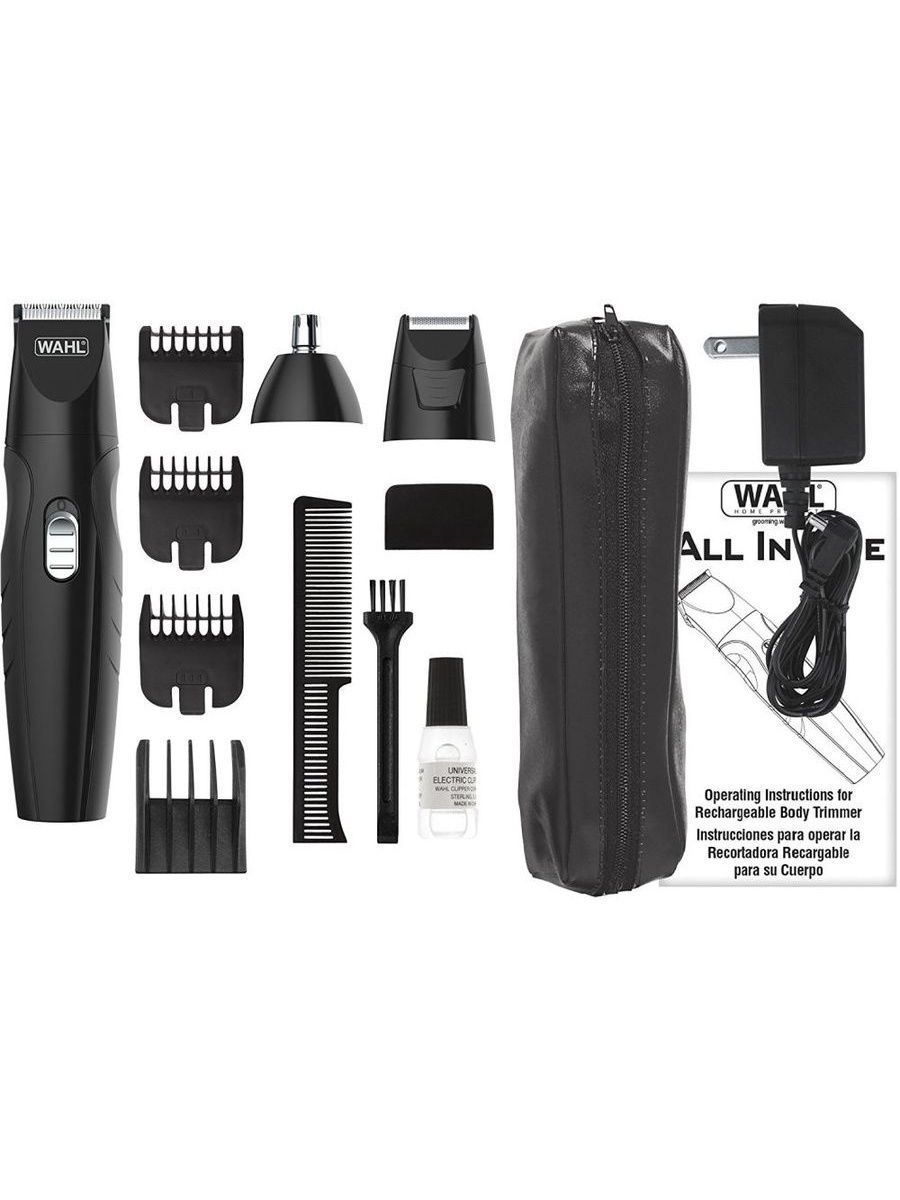 - Комплектация расческа; масло; несессер; триммер; защитная накладка; сетевой адаптер; бритвенная головка; щеточка для очистки; документация; насадка для удаления волос из носа и ушей; насадка-гребень 4 шт.