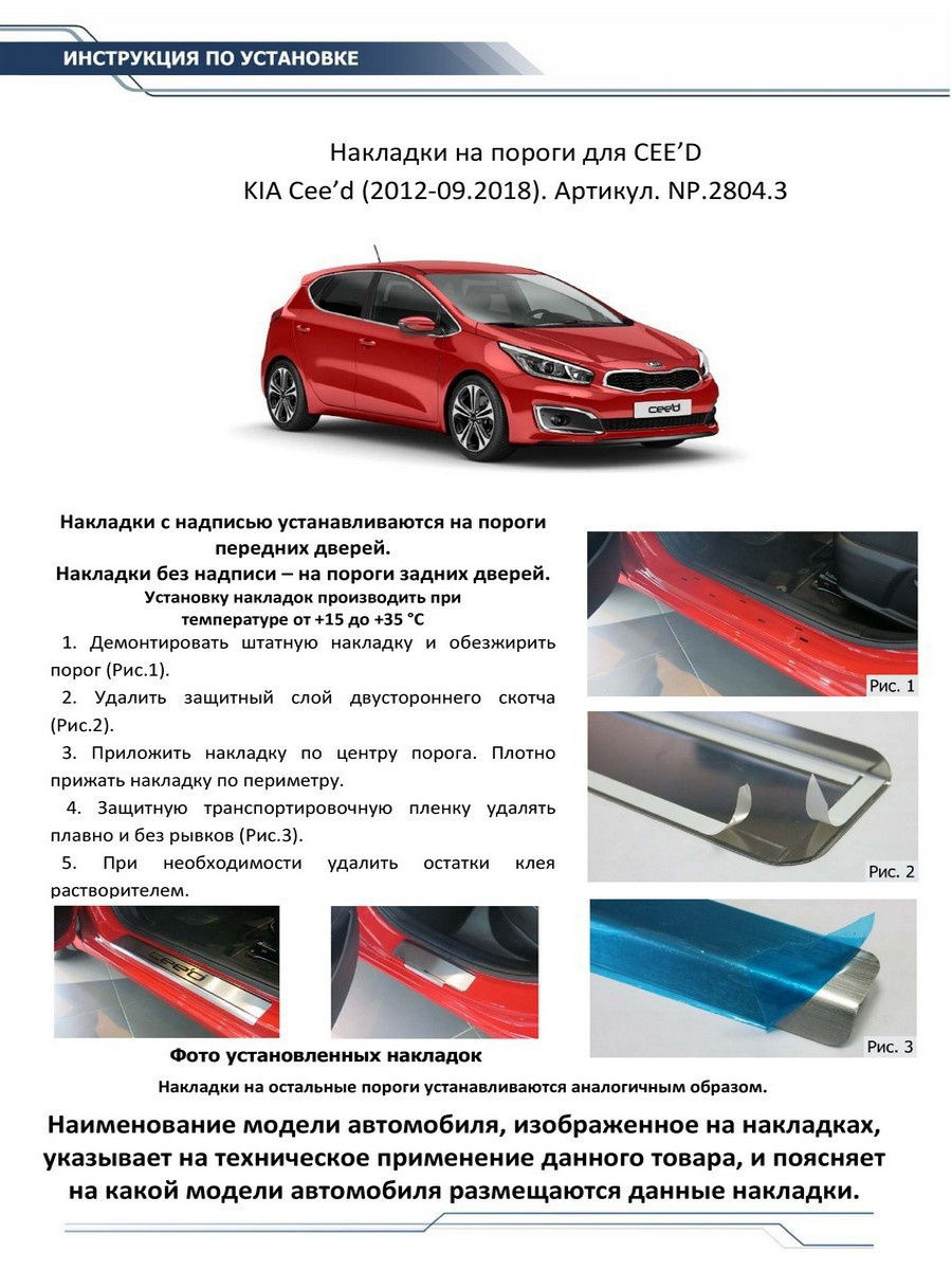 Накладки на пороги для Kia Ceed II 2012-09.2018