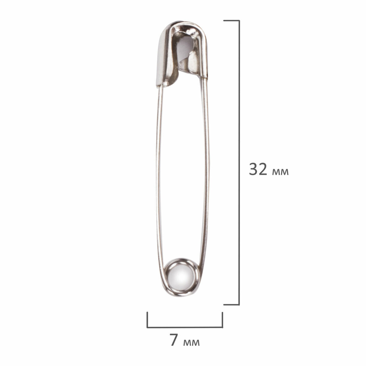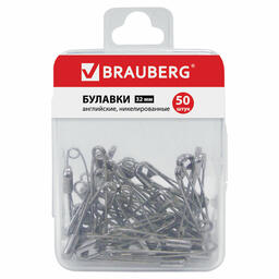 Булавки английские Brauberg, 32 мм, никелированные, 50 штук, в пластиковой коробке с европодвесом, 223970