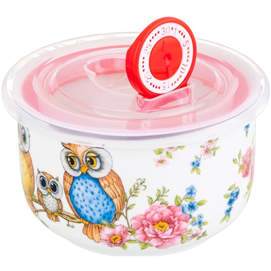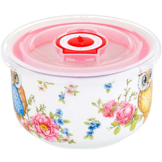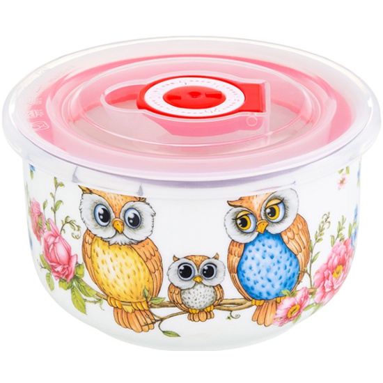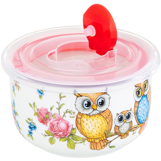 Салатник 260 мл 10,5х10,5х6 см Elan Gallery Совушки с пластиковой крышкой с силиконовым уплотнителем 420490 Elan