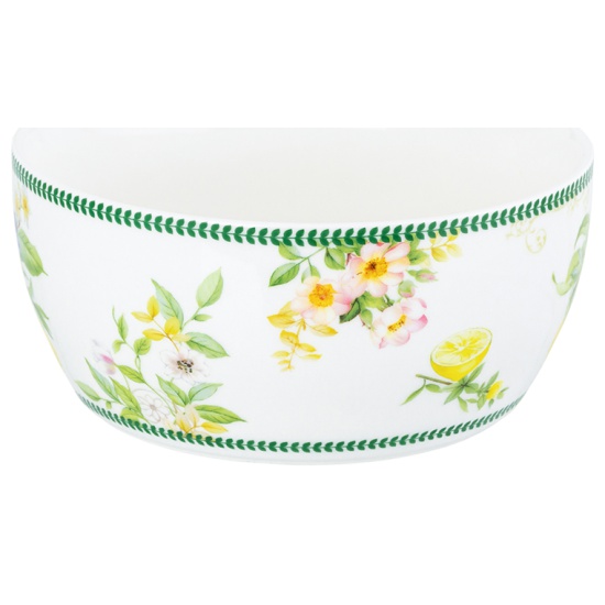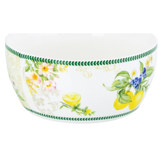 Салатник серии "Лимоны" объемом 600 мл подойдет для сервировки стола или для украшения интерьера. Можно использовать в роли личной суповой тарелки. Салатник выполнен из высококачественного фарфора New Bone China. Это фарфор нового поколения, не уступающий традиционному костяному фарфору по качеству, но при этом гораздо более экологичный в производстве. Фарфор не впитывает цвет и запах продуктов. Такая посуда долгое время будет выглядеть, как новая! Размер салатника 14х14х6 см. Салатник можно использовать в микроволновой печи и посудомоечной машине в режиме "Эко". Салатник из серии посуды "Лимоны" сможет стать настоящим украшением кухни или приятным подарком для ваших родных и близких!