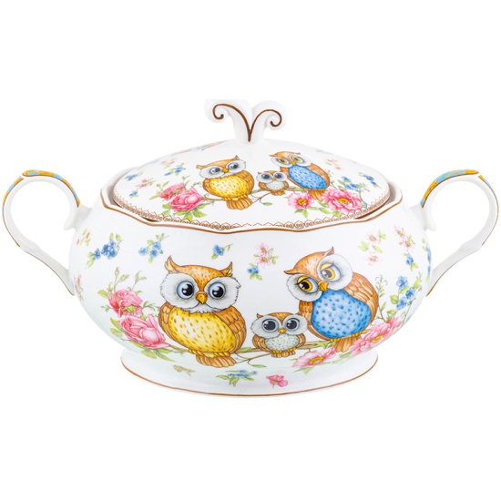 Пельменница-супница серии "Совушки" объемом 2,6 литра поможет удобно хранить и эстетично подавать к столу аппетитные борщи, ароматные щи, домашние пельмени и самые разные блюда! Супница выполнена из высококачественного фарфора New Bone China. Это фарфор нового поколения, не уступающий по качеству традиционному костяному фарфору, но при этом гораздо более экологичный в производстве. Супницей удобно пользоваться благодаря ручкам по бокам и ручке на крышке. Размер изделия 30х22,5х18 см. Можно мыть в посудомоечной машине в режиме "Эко". Поставляется в яркой картонной упаковке. Пельменница-супница из серии посуды "Совушки" сможет стать настоящим украшением вашей кухни или приятным подарком для ваших родных и близких!